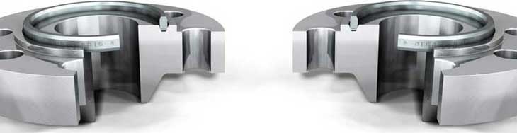 环连接面法兰常带有突面,环形槽加工在突面上。 该突面不构成密封部件。在法兰密封副中,两个突面有可能会彼此接触,在此情况下,被压紧的垫片不能承担附加的螺栓拉力, 振动和移动不能进一步压紧垫片,或减轻连接张力。
