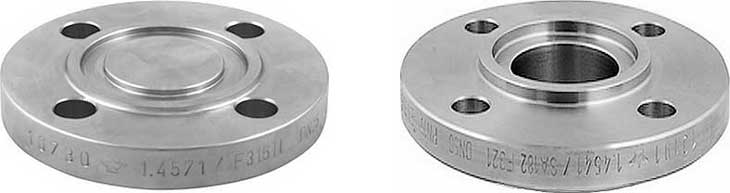 榫槽面法兰必须配对使用,其中一个法兰加工凸台,与其配套的另一个法兰加工凹槽。