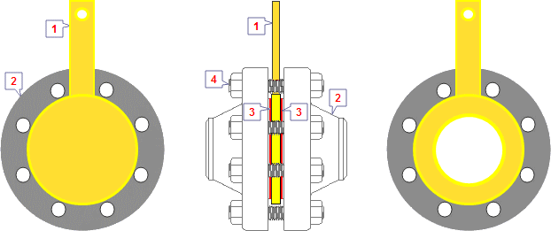 1. 浆型盲板 2. 法兰 3. 垫片 4. 螺柱