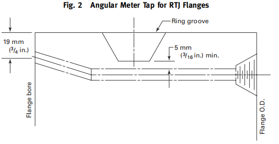 (d) NPS24的环连接面法兰需要参照下图开带角度的取压孔。