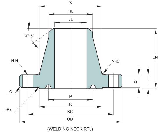 | Size | B | OD | C | K | P | E | T | Q | X | BC | N | H | LN | HL | JL | R(RX) Number |