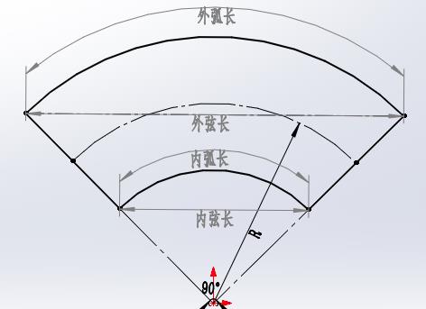 90度长半径弯头的外弧弧长、内弧弧长、外弧弦长和内弧弦长