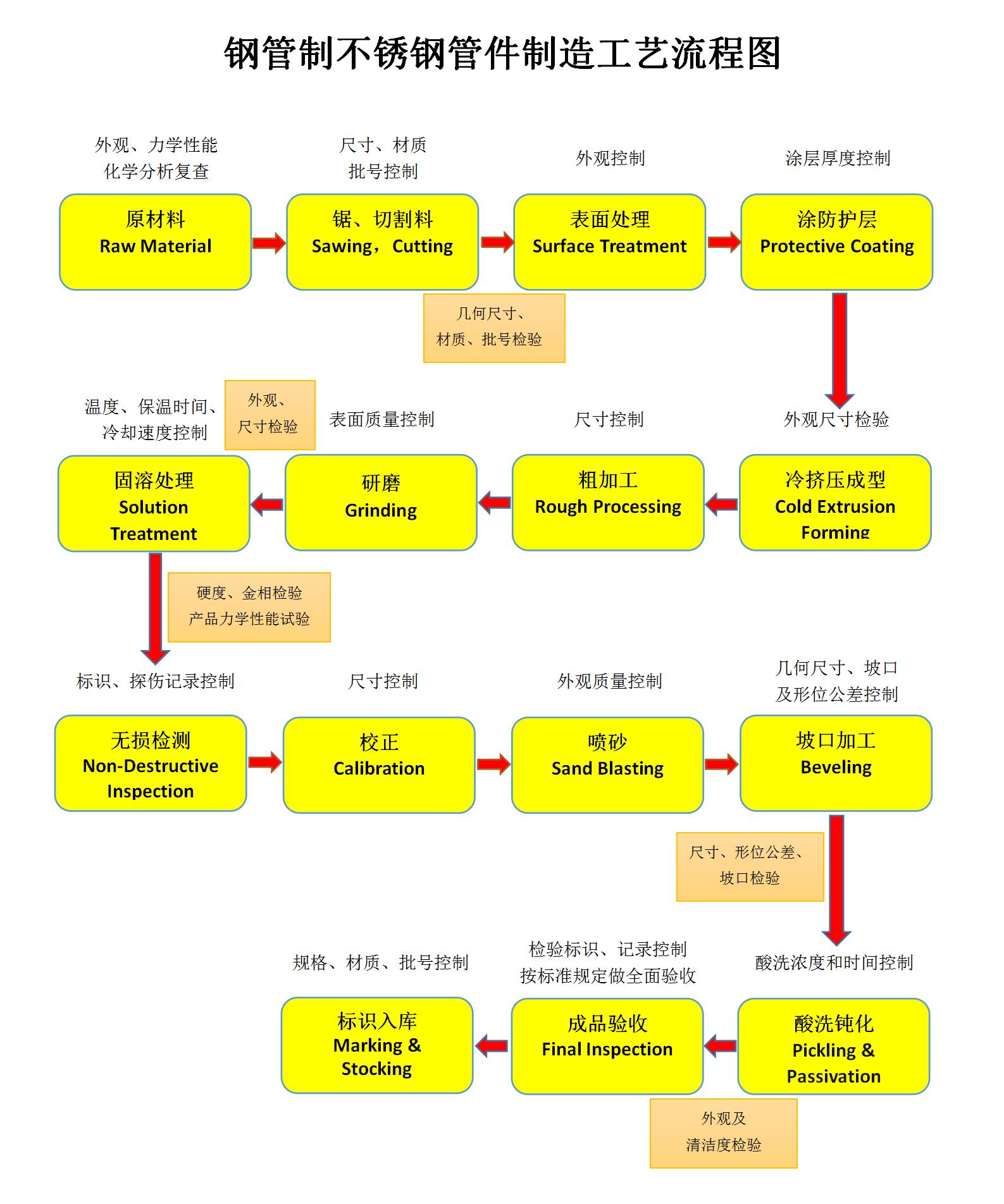 钢管制碳钢合金钢管件工艺流程图(冷成型)
