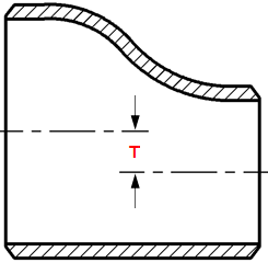 一些制图员常在图纸中标示管道中心线的变量T。当在垂直管线中使用偏心异径管时,偏心异径管的朝向也是非常重要的问题。参见下图。