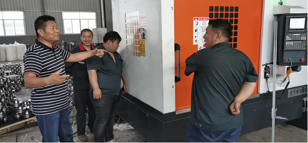 2020年9月28日,董事长到法兰车间视察我公司新上法兰用数控高速钻床设备安装运行情况。