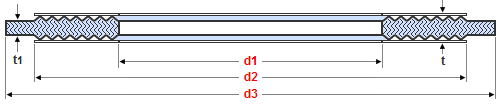 图示齿形垫片带有覆盖层和对中环。垫片厚度t由采购方指定。