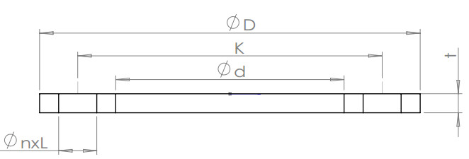 | NPS | DN | 垫片内径d | 垫片外径D | 螺栓孔数n | 螺栓孔径L | 螺栓孔中心圆直径K |