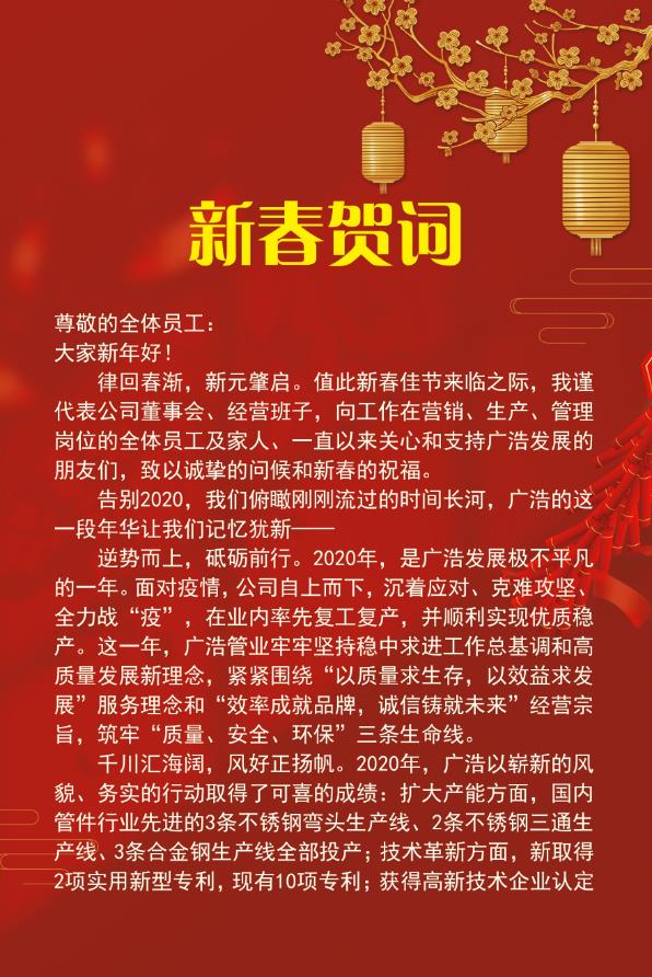 董事长肖桂兴为全体员工送上牛年新春贺词