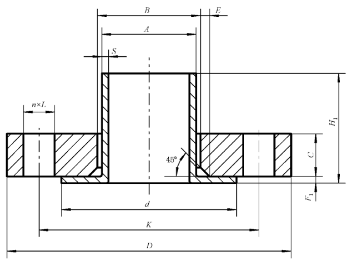 PN16翻边短节板式松套法兰的尺寸~GB/T 9124.1-2019