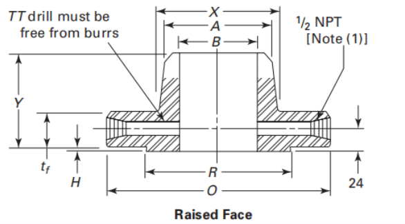Class 600孔板法兰的尺寸~ASME B16.36