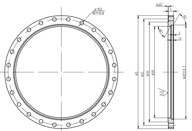 DN700-DN1400 PN16乙型平焊法兰(平密封面)的尺寸