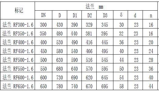 DN300-DN650 PN16甲型平焊法兰(平密封面)的尺寸
