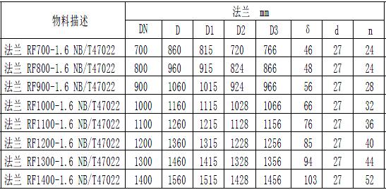 DN700-DN1400 PN16乙型平焊法兰(平密封面)的尺寸