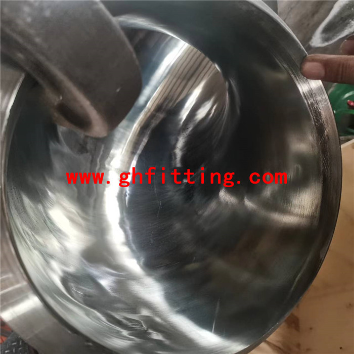 此不锈钢无缝变径弯头最终用户为恒天重工股份有限公司,由我司采用不锈钢无缝管压制一体成型,没有任何焊接,1050°固溶热处理后端部加工45°坡口,然后内外壁抛光至客户要求的光洁度。无损检测为PT。