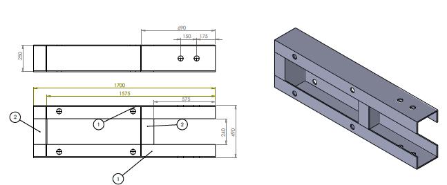 1.不锈钢支架:长1700mm,宽490mm, 高250mm。采用厚度为10mm的316不锈钢板,激光切割,氩弧焊焊接,抛丸、加热后喷涂环氧粉末,技术要求涂层厚度不低于1000μm。