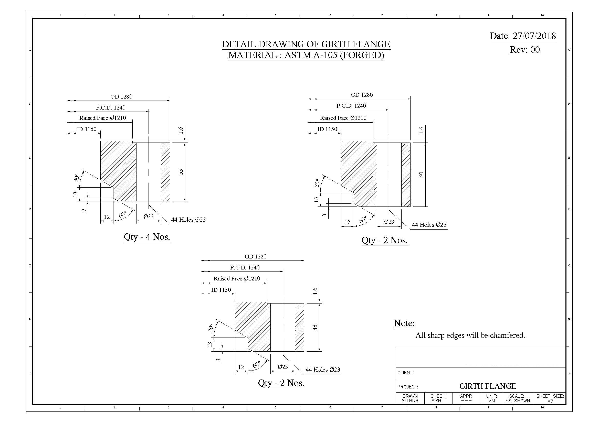 压力容器法兰Girth Flange OD=1280, ID=1150, Thk.= 45, ASTM A105, 按图加工