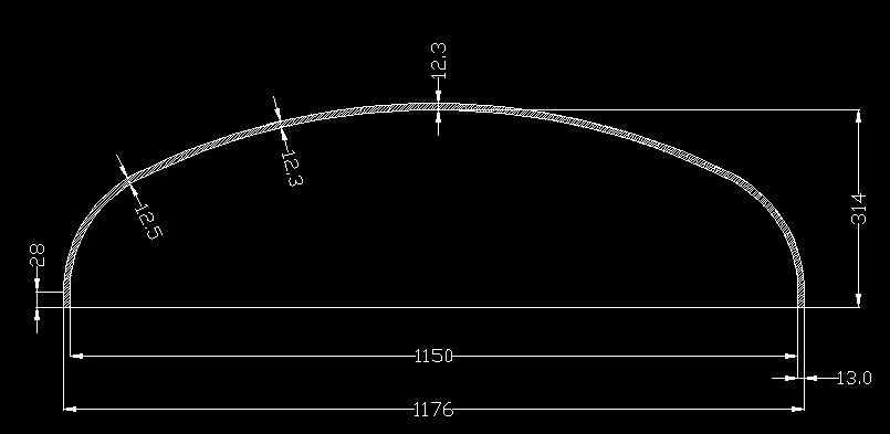 椭圆形封头. 2:1, ID=1150mm, T= 10mm (Min)