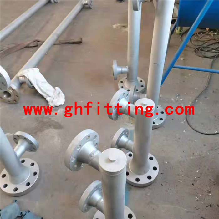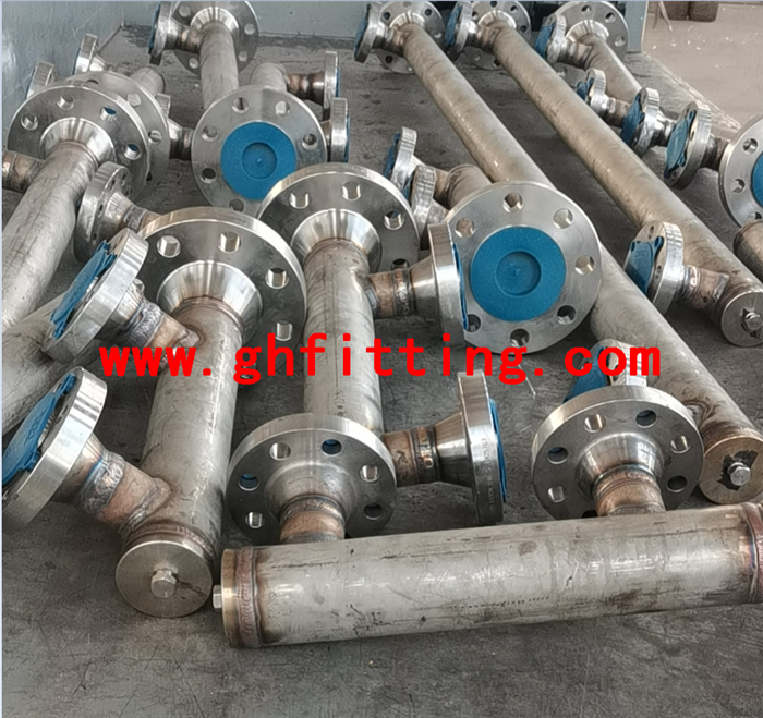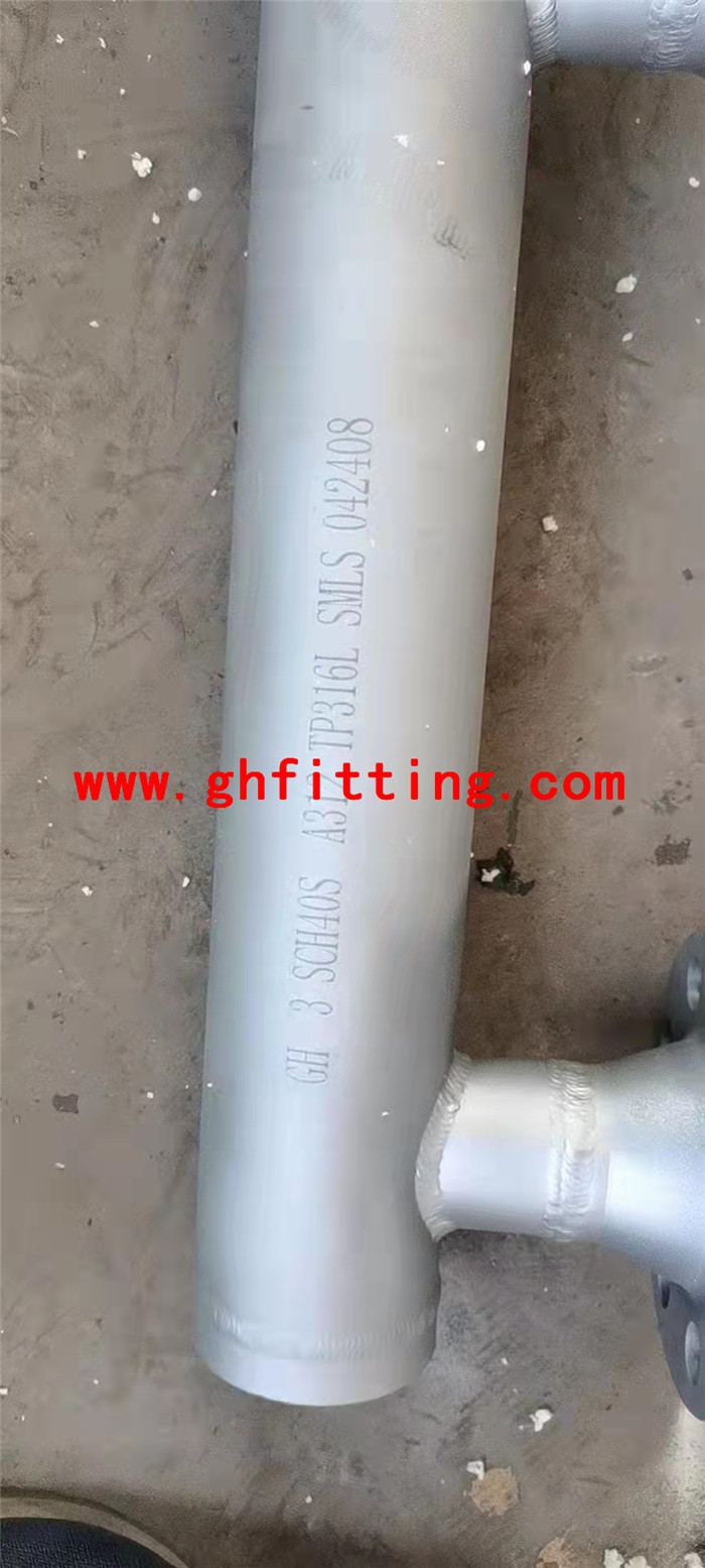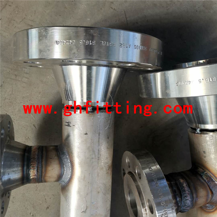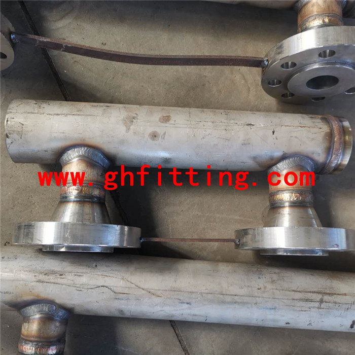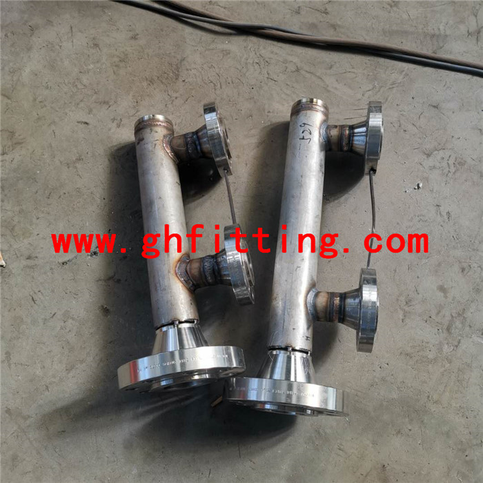 该批配管加工焊接主管采用A312 TP316 3" SCH40S的不锈钢无缝钢管,主管法兰为3" WNRF CL600 A182 F304 ASME B16.5不锈钢法兰。支管为A312 TP316 2" SCH80S的不锈钢钢管,支管法兰为2" WNRF CL900 A105N ASME B16.5的碳钢法兰。