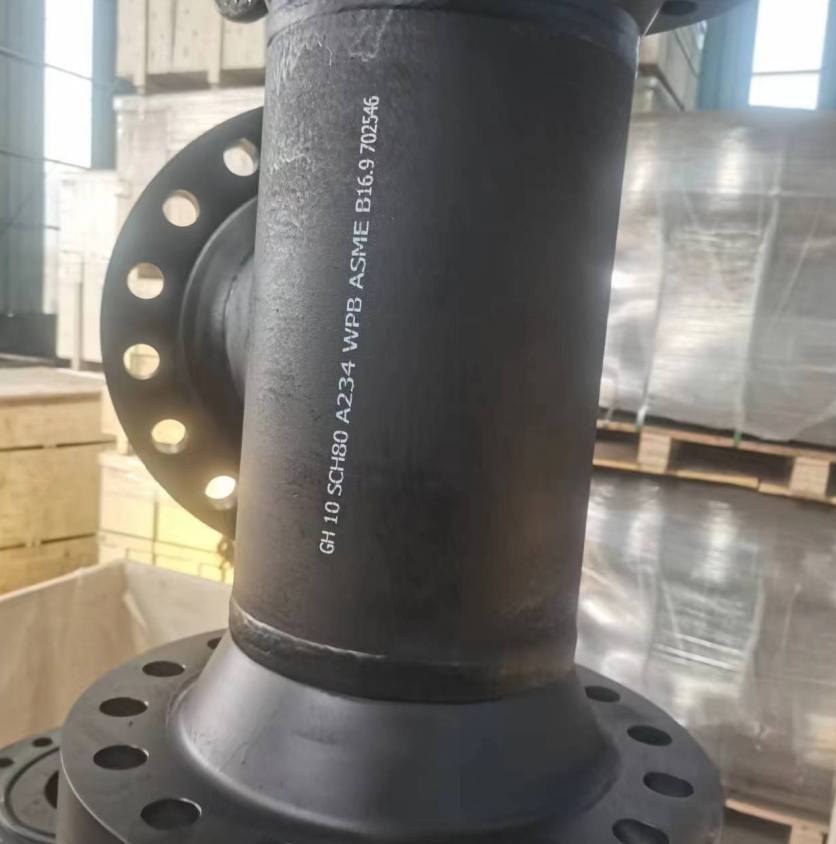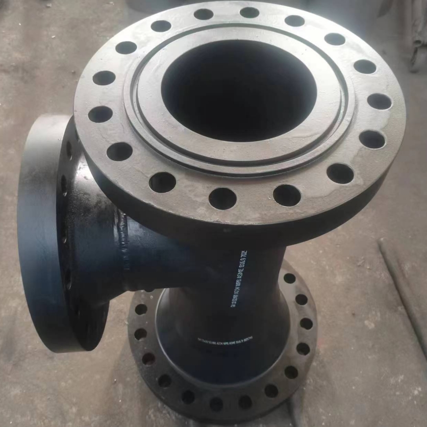 法兰式三通为在无缝三通的三个接管端部焊接带颈对焊法兰。无缝三通的制造标准是ASME B16.9,材质标准是ASTM A234 WPB,带颈对焊法兰的制造标准是ASME B16.5,材质标准是ASTM A105。法兰为环连接面class600和class900高压法兰。